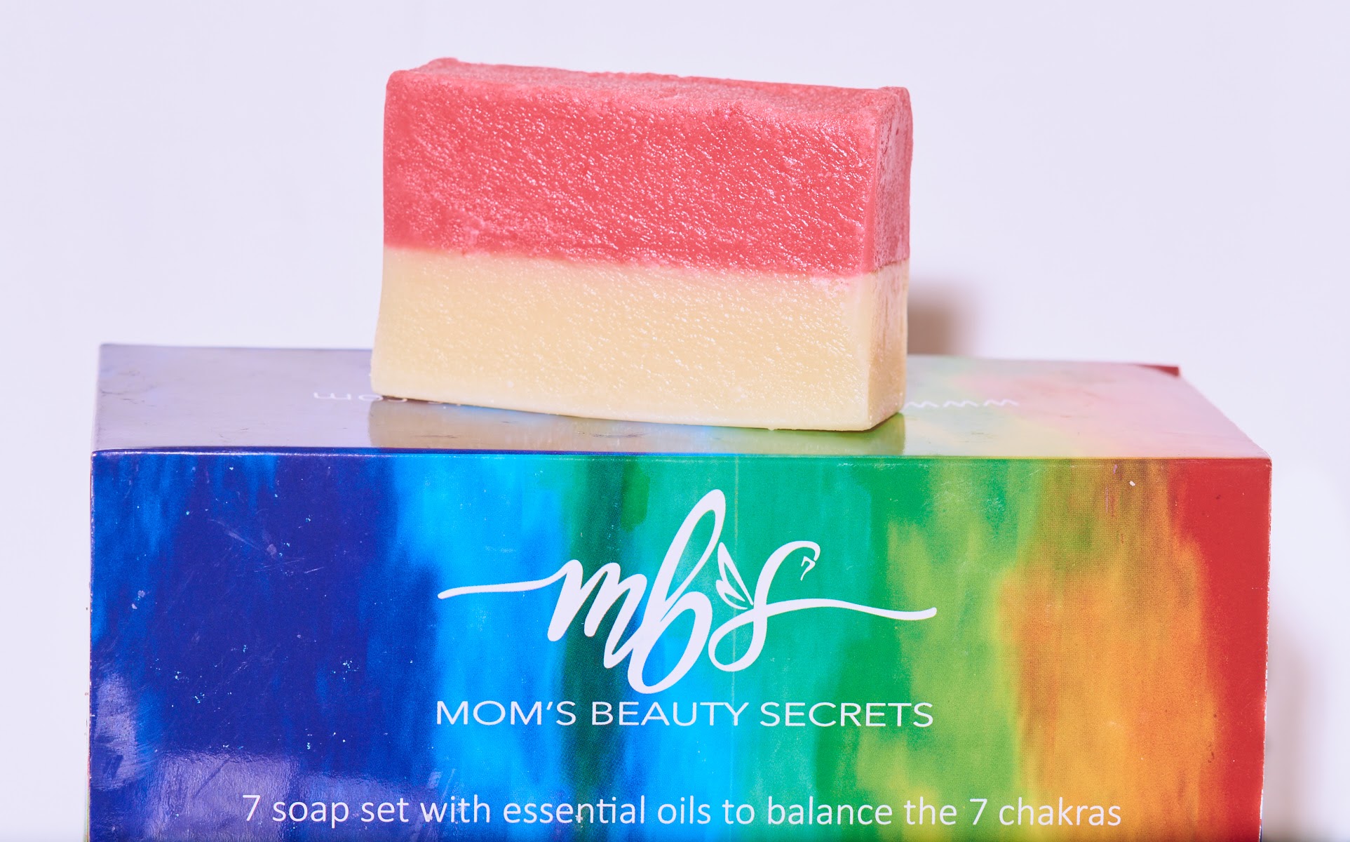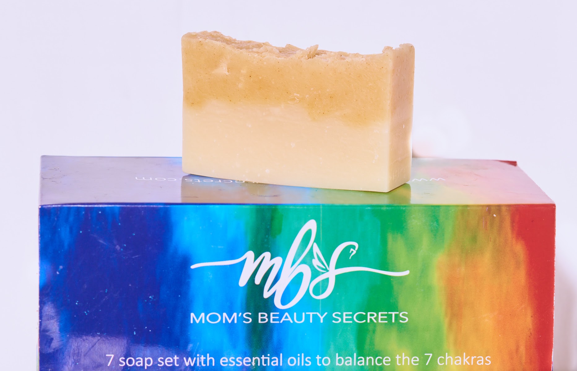 Like other soaps offered by ‘Mom’s Beauty Secrets’, these soaps are moisturizing, beautifully scented and offer a luxurious bath experience. Made using organic and natural oils, and colored using natural materials, ie. turmeric to achieve the orange color, used in our ‘Sacral’ chakra soap, and natural micas in others.