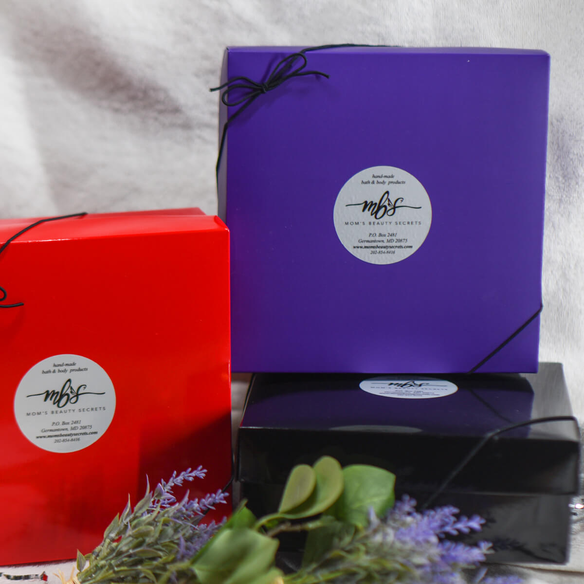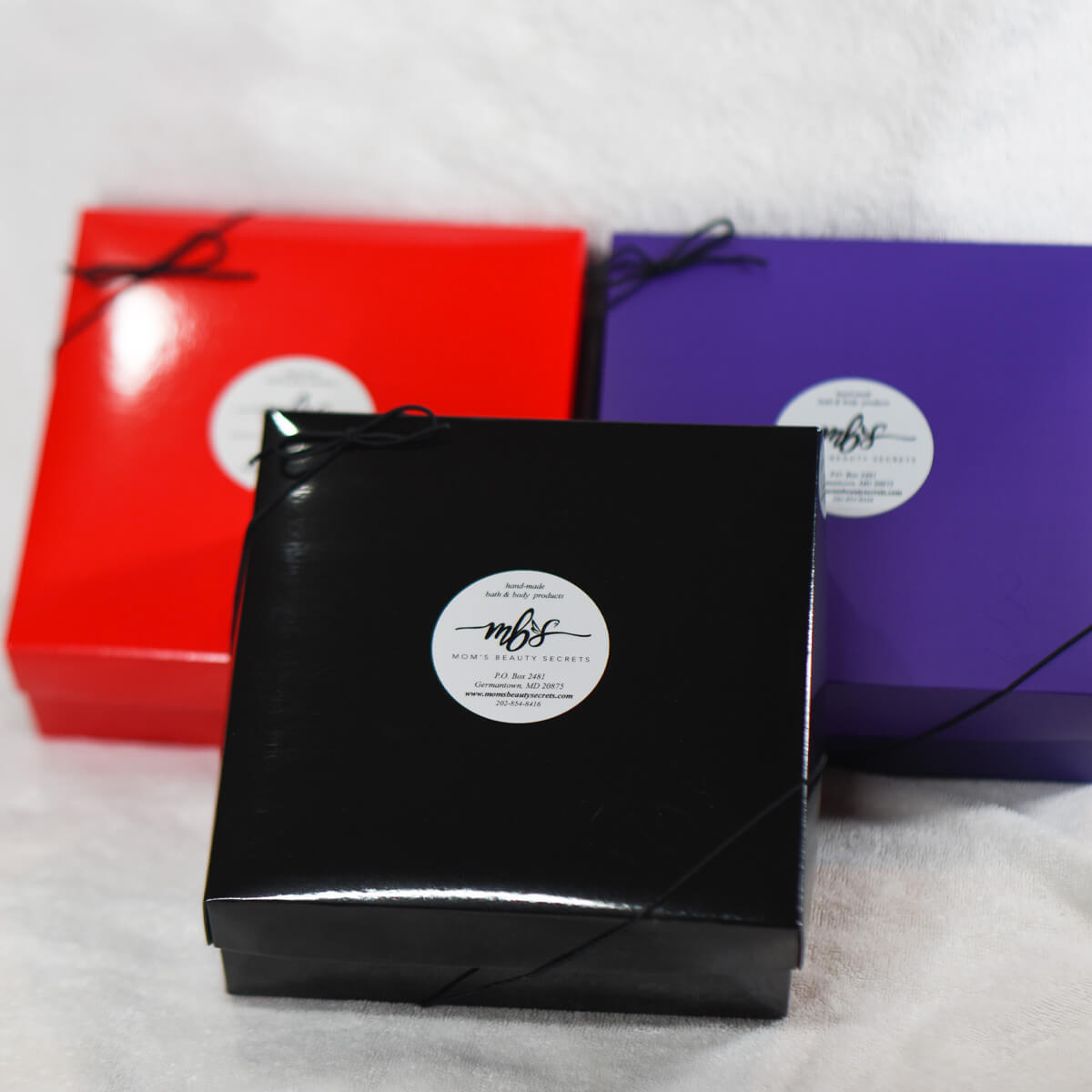 Are you looking for the perfect gift? Then try a fabulous gift box from Mom’s Beauty Secrets. With 3 colors to choose from: Scarlet Red, Royal Purple, and Glossy Black. Everything is nicely packaged for gifting. Buy a box of 6 items and save. Each gift box includes: