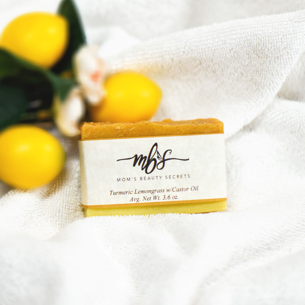 Turmeric Lemongrass Soap is one of the most popular items from Mom’s Beauty Secrets. This soft, smooth, and refreshing bar comes in an average weight of 3.5 oz. Experience the fresh natural scent! The Turmeric Lemongrass Soap was made with care to moisturize and soothe dry and itchy skin so that you can feel smooth and fresh. The lemongrass essential oil in the soap helps you to relieve stress. It is also anti-inflammatory so it helps you to reduce redness, swelling, and pain in the skin.